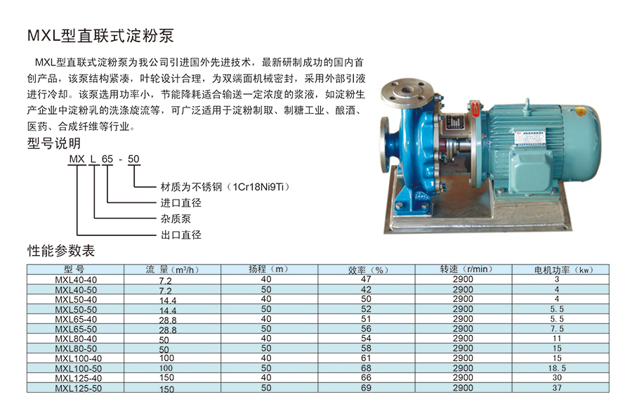 MXL型直連式淀粉泵